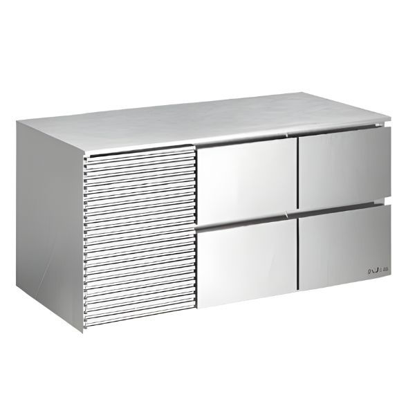 Bàn mát Klaus FOH-DC-2N là thiết bị bảo quản thực phẩm dạng hộc kéo (Drawer Chiller) chuyên dụng, được thiết kế để lắp đặt tại các khu vực sơ chế có không gian hạn chế. Với kết cấu 4 ngăn kéo linh hoạt, sản phẩm cho phép đầu bếp phân loại nguyên liệu một cách khoa học ngay dưới mặt bàn thao tác. Thân vỏ được gia công hoàn toàn từ inox SUS 304 dày dặn, đảm bảo khả năng chống ăn mòn và độ bền cao trong môi trường bếp công nghiệp bận rộn.