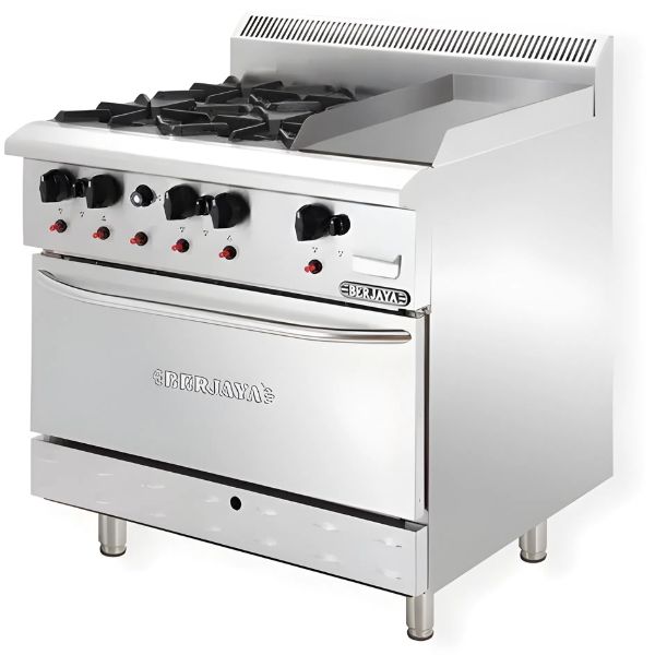 Bếp Âu Berjaya OB4GG1BWOL là thiết bị nấu nướng đa năng cao cấp nhập khẩu từ Malaysia. Sản phẩm tích hợp hoàn hảo 3 chức năng: 4 họng đốt nấu Âu, 1 mặt chiên phẳng và 1 lò nướng bên dưới. Thiết kế “tất cả trong một” giúp tối ưu hóa không gian bếp và nâng cao hiệu suất làm việc. Đây là giải pháp lý tưởng cho các nhà hàng chuyên món Âu và các khu bếp công nghiệp hiện đại.