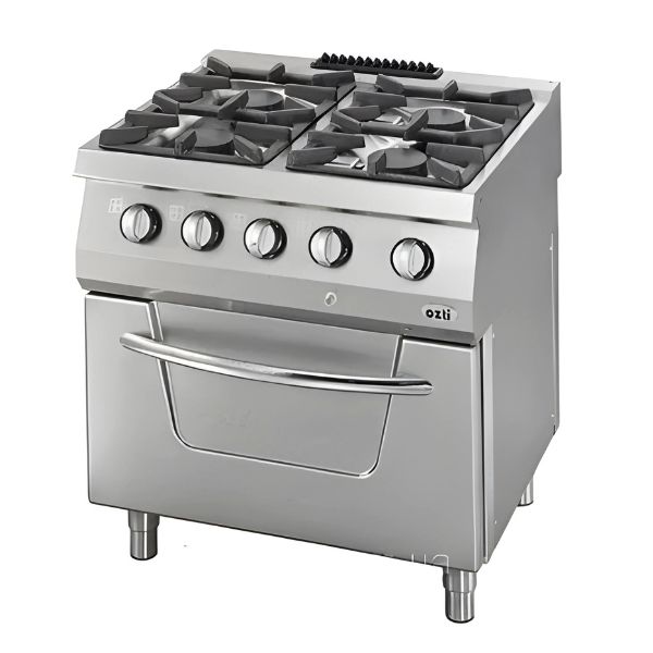 Bếp Âu 4 họng có lò nướng Ozti OSOGF 8070L vận hành hiệu quả với nguồn điện 3 pha.