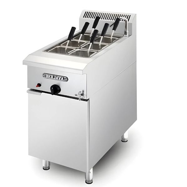 Bếp trụng mì dùng gas Berjaya GPB6BFS-17 chân đứng. Công suất 52000 Btu/Hr, 3 họng đốt, nhập Malaysia, bảo hành 12 tháng.