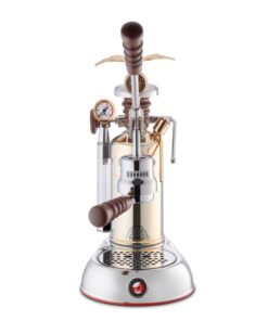 Máy pha cà phê thủ công cần gạt (Lever Espresso Machine), thiết kế cổ điển mang tính biểu tượng, thân máy mạ vàng đồng (Rame Gold) với tay cầm gỗ, dành cho người yêu thích nghệ thuật pha Espresso truyền thống.