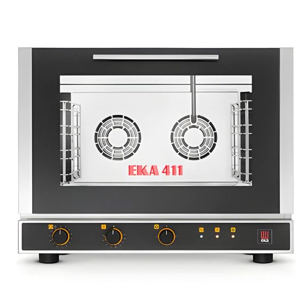 Lò nướng đa năng 4 khay EKA EKF 411 là thiết bị nướng đối lưu chuyên nghiệp từ Ý. Sản phẩm được sản xuất bởi thương hiệu EKA danh tiếng với tiêu chuẩn chất lượng châu Âu. Với thiết kế 4 khay nhỏ gọn, lò là giải pháp tối ưu cho các bếp ăn vừa và nhỏ. Thiết bị cho phép chế biến đa dạng các loại thực phẩm từ món mặn đến bánh ngọt. Đây là trợ thủ đắc lực giúp nâng cao hiệu suất nấu nướng hằng ngày của đầu bếp. Sản phẩm đảm bảo mang lại chất lượng món ăn đồng nhất và thơm ngon nhất.