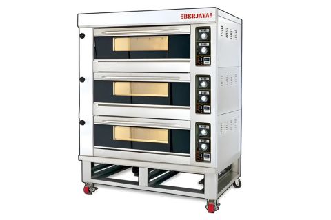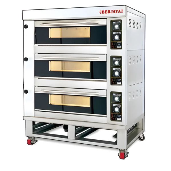 Lò nướng điện Berjaya BJY-3B6P-E 3 tầng. Công suất 22.5kW, tích hợp đế gốm và phun hơi nước, nhập khẩu Malaysia, bảo hành 12 tháng.