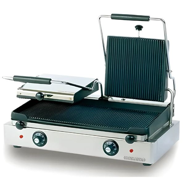 Máy kẹp nướng bánh mì đôi Berjaya CG22 là thiết bị nướng ép chuyên nghiệp. Sản phẩm nhập khẩu nguyên chiếc từ thương hiệu Berjaya lừng danh tại Malaysia. Thiết bị sở hữu hai họng nướng độc lập giúp gia tăng năng suất hằng ngày. Đây là giải pháp hoàn hảo cho các tiệm bánh mì và quán ăn nhanh hằng năm. Máy giúp bánh mì chín giòn và có vân nướng đẹp mắt nhất hằng giờ. Sản phẩm mang lại hiệu quả vận hành cao và độ bền vượt trội.