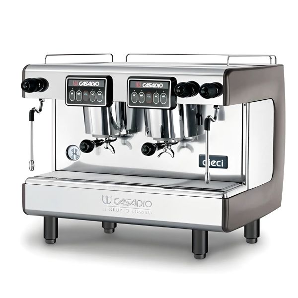 Máy pha cà phê Casadio Dieci A2 là dòng máy pha chuyên nghiệp 2 grouphead đến từ Casadio – một thương hiệu danh tiếng thuộc tập đoàn Gruppo Cimbali của Ý. Dieci A2 được biết đến là một “cỗ máy làm việc” thực thụ với thiết kế thực dụng, khung máy chắc chắn và hiệu năng cực kỳ ổn định. Đây là lựa chọn hàng đầu cho những quán cà phê có lượng khách đông, đề cao sự bền bỉ và chất lượng Espresso chuẩn mực của Ý.