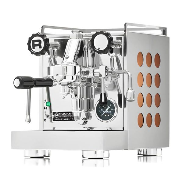 Máy pha cà phê Rocket Appartamento là dòng máy pha Espresso thủ công phân khúc cao cấp đến từ thương hiệu Rocket Espresso nổi tiếng của Ý. Với thiết kế mang tính biểu tượng, sử dụng các tấm ốp hông đục lỗ đặc trưng (có thể tùy chọn màu sắc), Appartamento không chỉ là một thiết bị pha chế mà còn là một món đồ nghệ thuật tinh xảo. Máy được thiết kế dành cho những không gian hạn chế nhưng vẫn yêu cầu chất lượng chiết xuất chuyên nghiệp nhất.